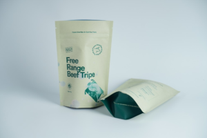 The custom compostable stand up pouches are made of paper and PLA materials, and are TÜV Austria certified for industrial compost, they are truly compostable pet treat bags.